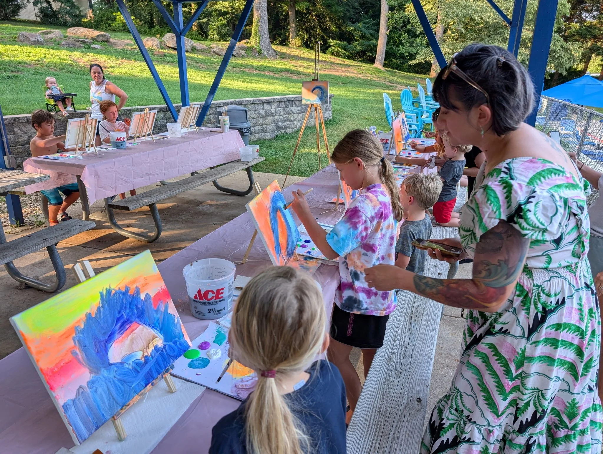 * Free community paint classes are held at Anne Arundel public libraries and other spaces around the county to help make art affordable and accessible to All.* We deliver portable art studios to private businesses and residences for retreats and special occasions.